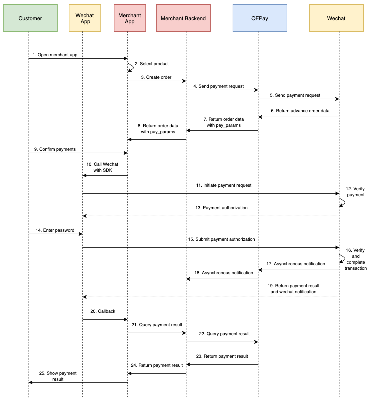 微信应用内支付需要在微信开放平台正式申请。 商户必须注册账户和APP,然后收到“appid”才能进行支付。 更多信息请参考官方 Wechat documentation.